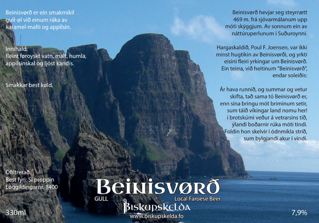 Beinisvørð er ein smakmikil gull-øl við einum ráka av karamel-malti og appilsin.